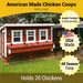 Our XL Chicken Coop comfortably houses up to 20 chickens. It is built to last, made in the USA, and constructed out of wood by Amish-trained craftsmen. Heavy-duty and quality-made, this coop is designed to be used in both hot AND cold climates.
